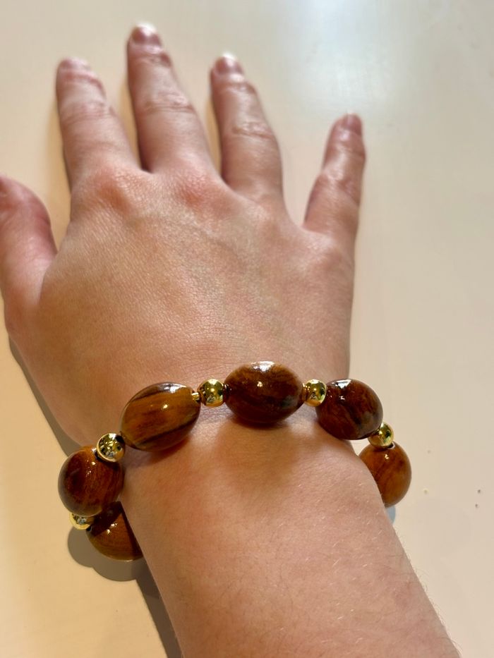 Les billes en bois offrent un rendu naturel, élégant et léger, agréable au poignet. Ce bracelet s’adapte parfaitement à différents styles : bohème, ethnique, casual ou chic décontracté.