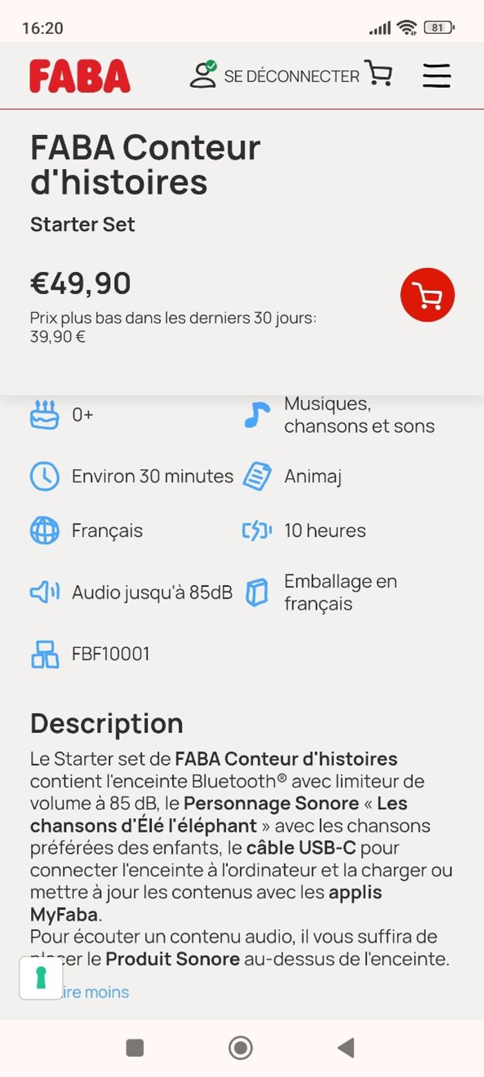 J'ai acheté cette conteuse d'histoire "Faba" pour un cadeau de Noël, mais finalement c'est un doublon 🎁