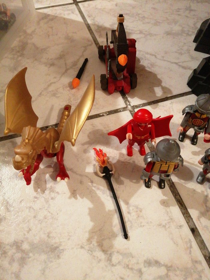 Avec 4 personnages, un dragon doré et de nombreuses armes, Avec une catapulte qui tire des projectiles, Compatible avec la Citadelle secrète du Dragon (Réf. 5480).