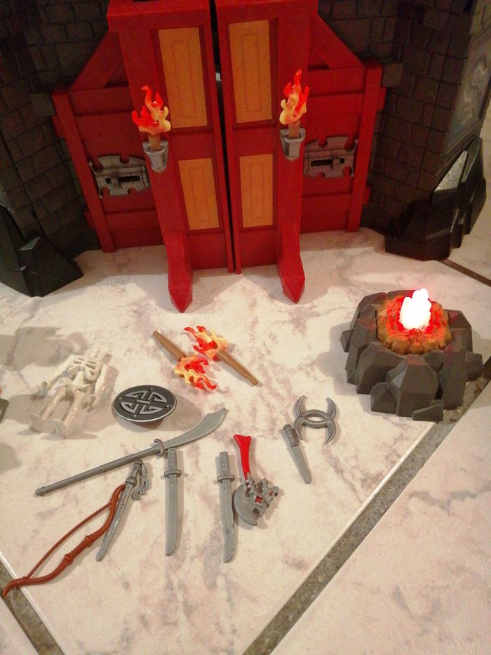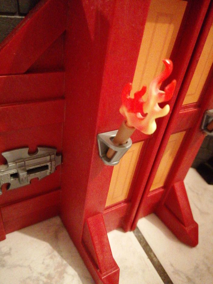 - 2 support gris pour flambeaux (sur les cotés de la forteresse)