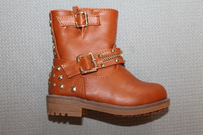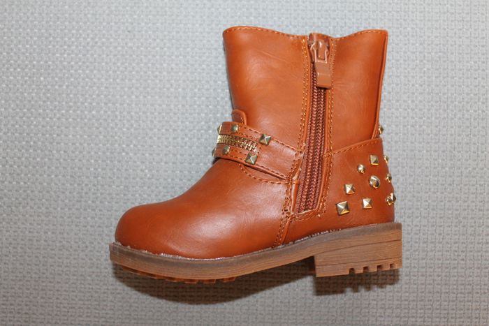 belles bottines marron caramel pointure 21 neuves dans boites,look branché et couleurs qui sort de l'ordinaire,fermeture zippée pour un enfilage simple et fourrée pour maintenir au chaud.Marque Jili.