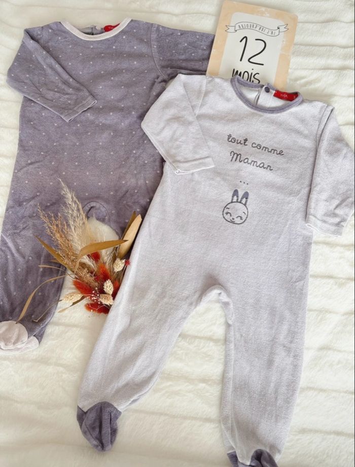 Lot de 2 pyjamas pour fille, taille 12 mois, en bon état.