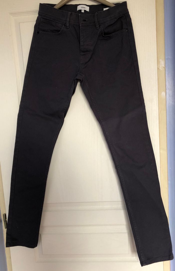 Jean Jules gris taille 36 Neuf sans étiquette, jamais porté Slim Braguette à boutons 2 poches devant + poche ticket 2 poches au dos 98% coton 2% elasthanne Longueur totale 107cm Longueur entrejambe 82cm Largeur taille 38cm Largeur bas 15cm Fabriqué au Bangladesh Prix d’origine 49€