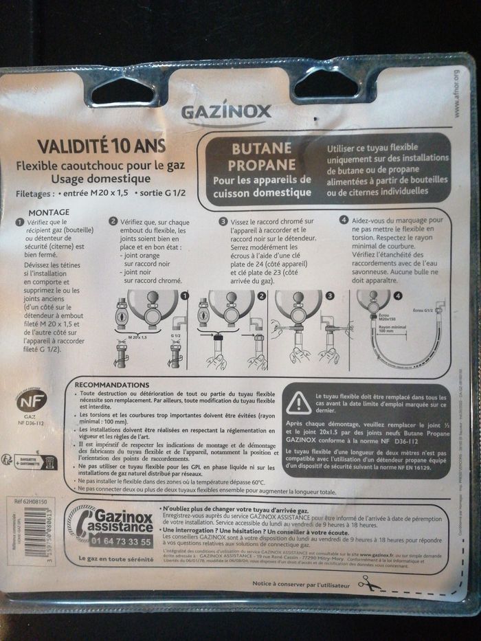 Tuyau gaz de marque Gazinox NEUF dans son emballage scellé À remplacer avant 2032 Norme NF