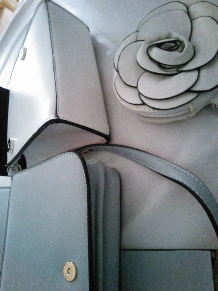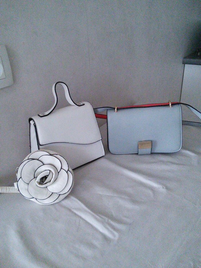 1 sac en forme légèrement trapèze. Marque Primark. Coloris blanc surpiqué noir. Dimensions base (cm) : L18 x H13 x P7,5. Comme neuf. + 1 sac rond imitation fleur. Coloris blanc surpiqué noir. Dimensions (cm) : ø 12. Défaut : la lanière s’effrite par endroit (cf photo 5). Rien de gênant visuellement. Convient aussi pr jeune fille. + 1 sac rectangulaire. Coloris Gris bleuté clair rouge noir. Sans marque. Dimensions (cm) : L19 x H16 x P7. Aucun défaut. Conviennent aussi aux jeunes filles.