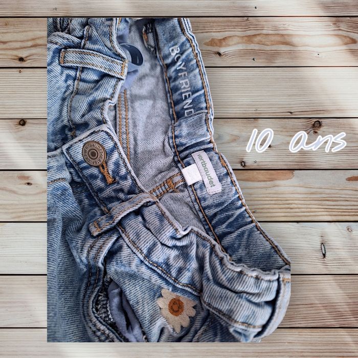 💙🌸👖 Jean boyfriend fille brodé – Vertbaudet – 10 ans 👖🌸💙