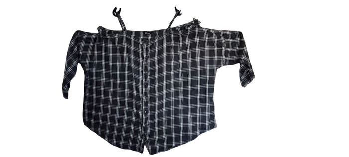 Chemisier pouvant se porter sans bretelles. Avec épaules dénudées. Taille 30/32 (58/60). 100%coton.