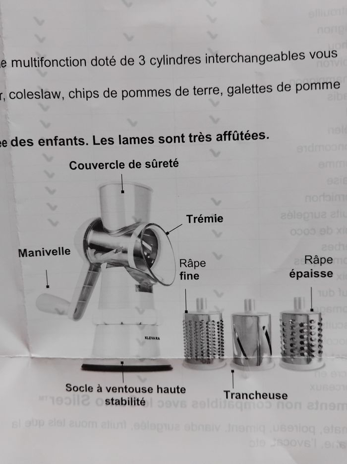 Râpe a légumes manuelle avec 3 cylindre neuve dans son carton d'origine