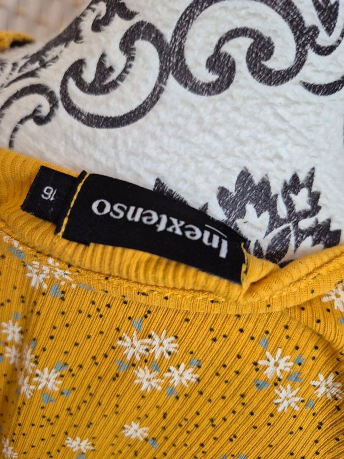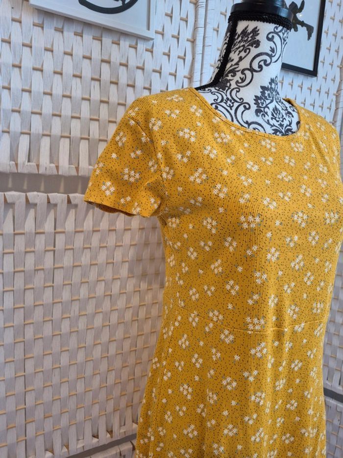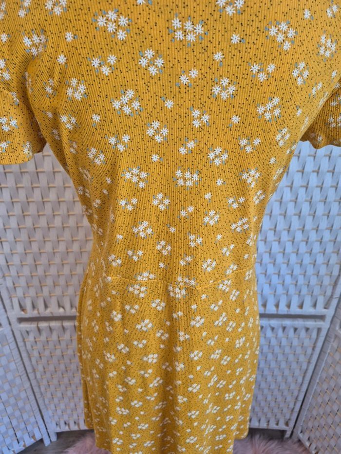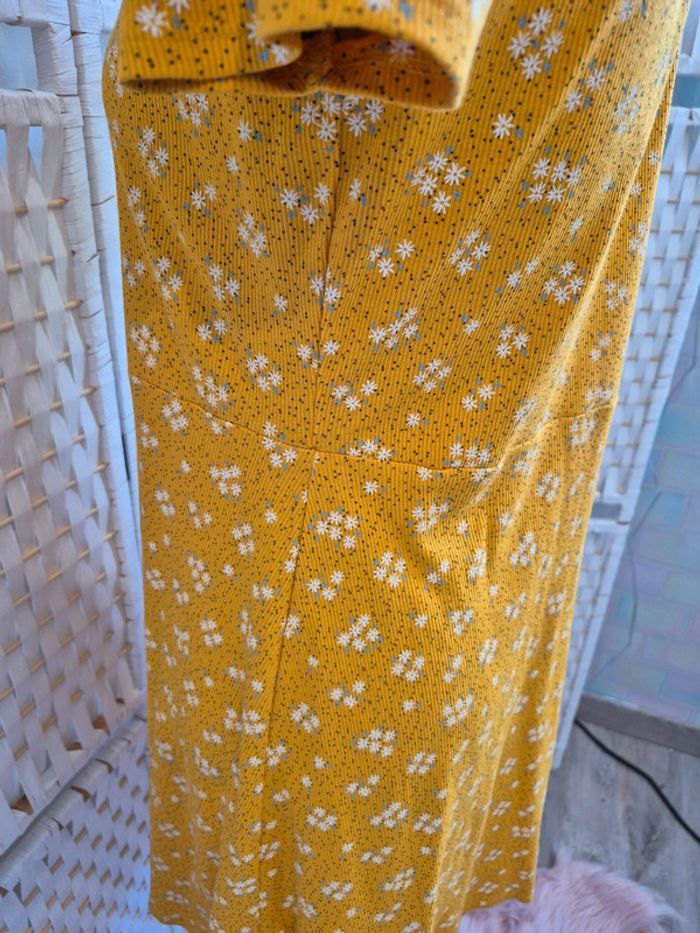 💕Jolie Robe jaune moutarde à fleurs, tissu côtelé, de la marque Inextenso. Taille 16 ans, correspond à un 34 (XS).
