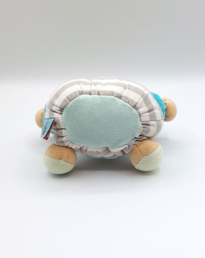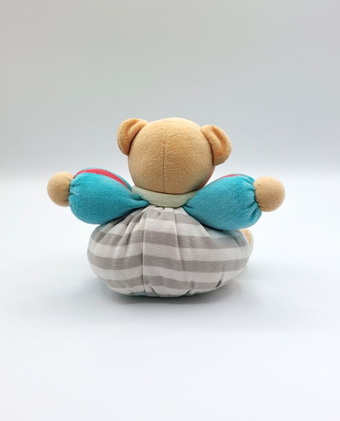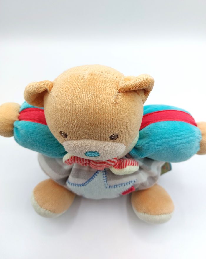Peluche doudou ours boule KALOO 16 cm beige bleu gris rayures étoile collection 1998-2012 grelot - photo numéro 4