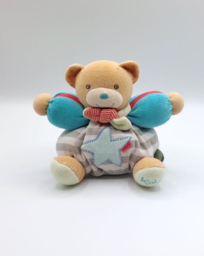 Peluche doudou ours boule KALOO 16 cm beige bleu gris rayures étoile collection 1998-2012 grelot - photo numéro 1