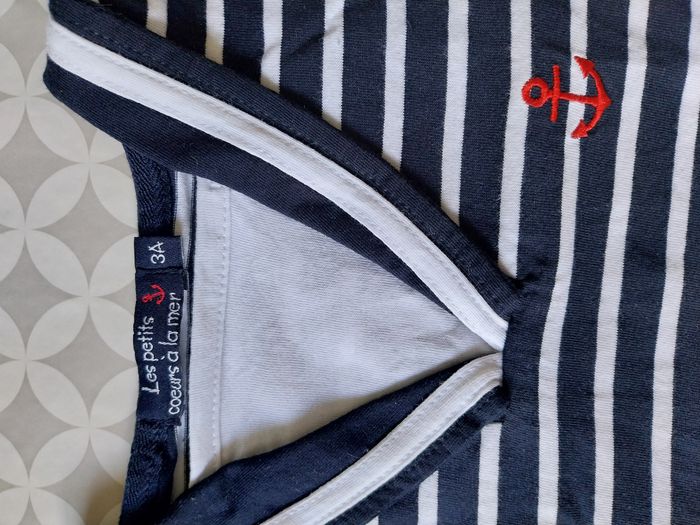 ⚓ Tee-shirt marinière Les Petits Cœurs à la Mer – Taille 3 ans