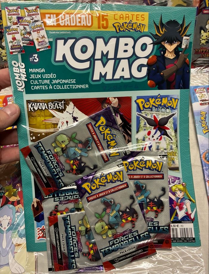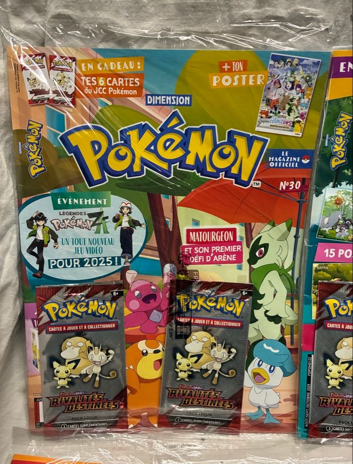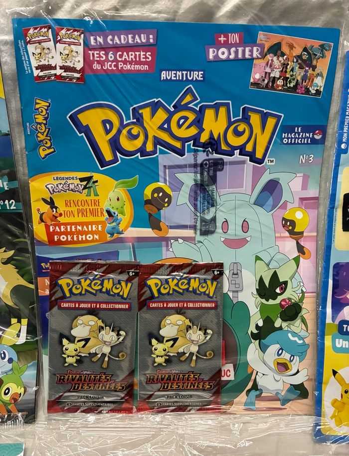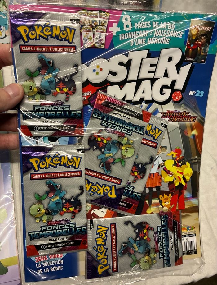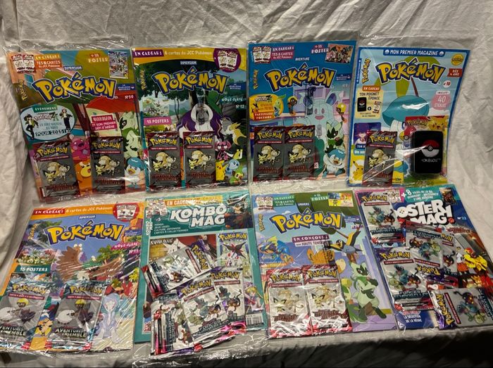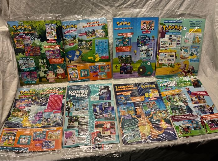 8 kits magazines + 23 boosters + jeu Pokémon neufs scellés