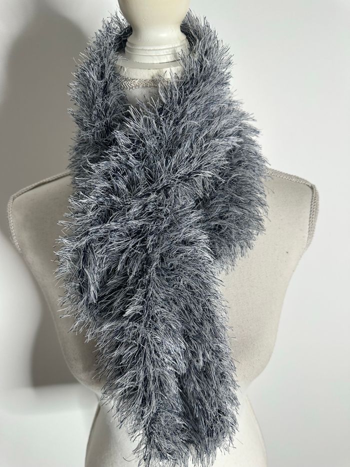 Ensemble - Excellent état - Taille unique - Gris bleu et blanc - Écharpe et bonnet - Tissus maille poilue - Style Y2K, années 2000’ - Ultra doux et chaud Dimensions: - Bonnet taille unique - Écharpe 160x15cm