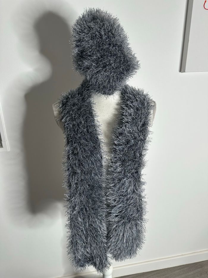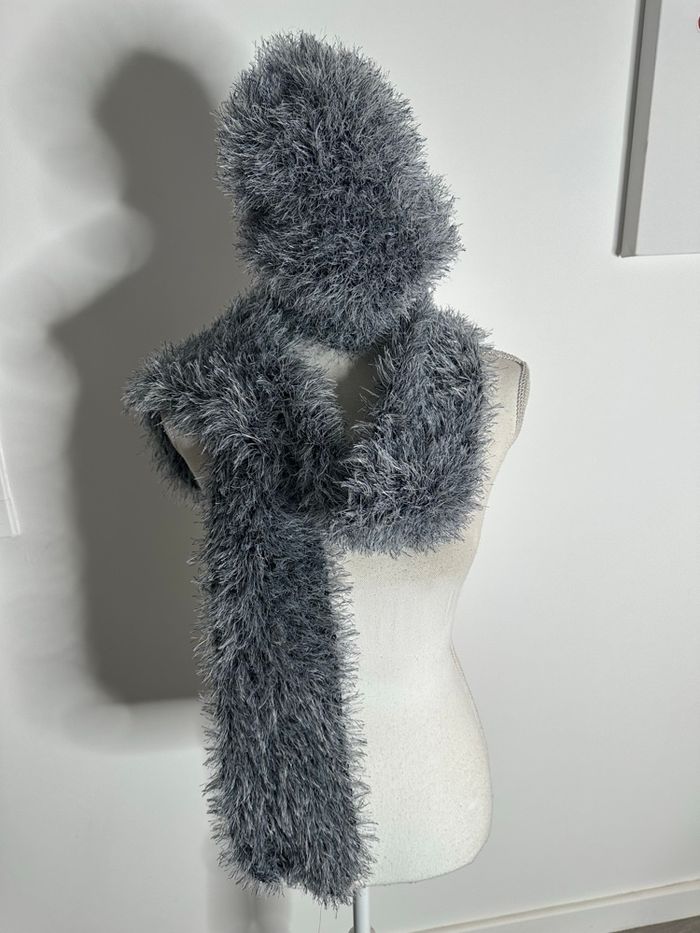 Ensemble écharpe et bonnet poilu gris bleu Y2K - photo numéro 1