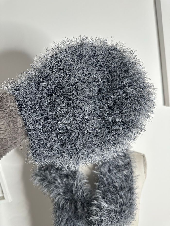 Ensemble écharpe et bonnet poilu gris bleu Y2K - photo numéro 2
