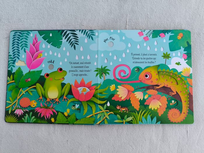-> Tigre, oiseau, perroquet, grenouille, pluie, éléphanteau, éléphant, orang-outan, léopard