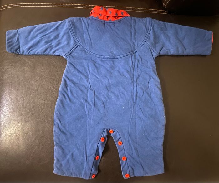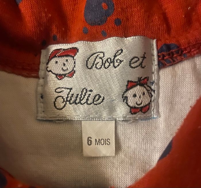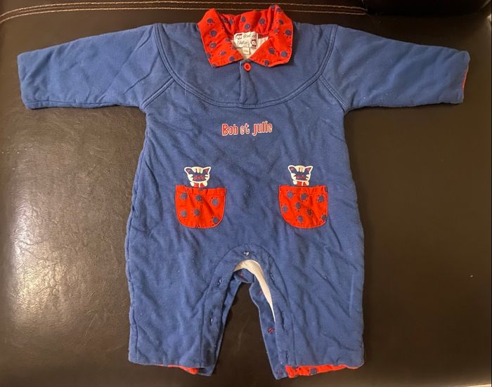 Combinaison »Bob et Julie »bleu et rouge taille 6 mois en bel état.