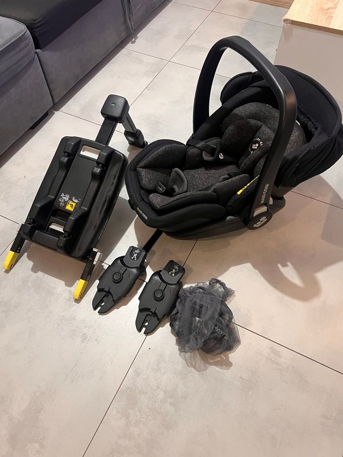 - Composition du lot : 1 châssis, 1 nacelle 2en1 car la nacelle naissance ce transforme dès que bebe grandit , 1 cosy marble base inclinable avec sa base isofix , adaptateur , moustiquaire et protège pluie .