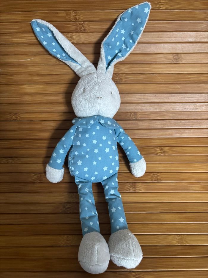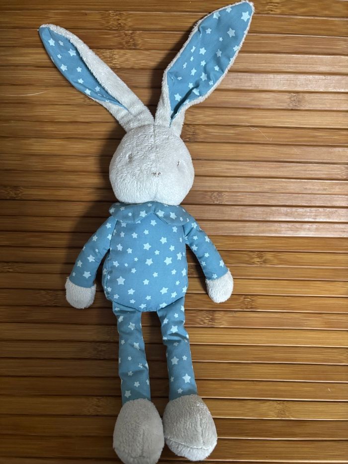 Doudou lapin bleu gris étoile klorane