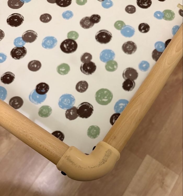 Le parc présente quelques griffures sur les angles et déchirures sur le plateau du parc, cela ne gêne en rien son utilisation grâce au matelas.
