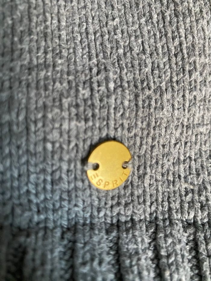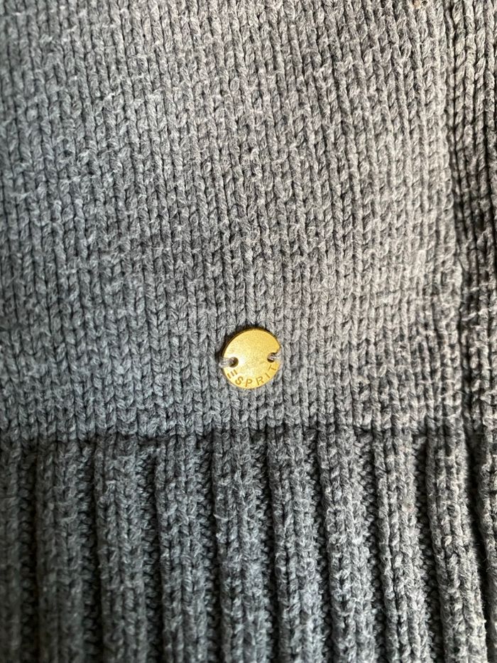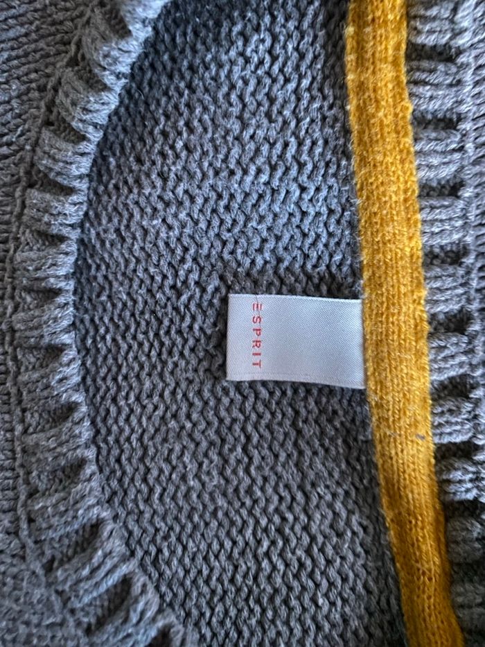 Pull gris larges bandes poilues en bas des manches rose pale noir et jaune L Esprit - photo numéro 3