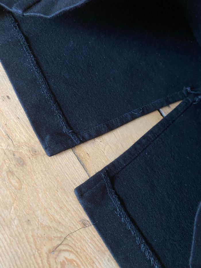 Jupe droite noire très confortable Fermeture argentée haut milieu dos et fendue bas milieu dos ( fente 13,5 cm) 70 % viscose, 27 % polyamide 3 % élasthane Taille 38 Etam La ceinture mesure à plat sans tirer 38 cm, peut aller jusqu'à 43 cm en tirant Longueur 54 cm