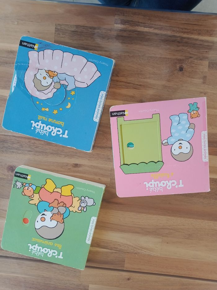 Lot de 3 livres beaucoup manipuler et montrant des signes d'usures (voir photo, re scotché différents endroits) mais reste fonctionnel.