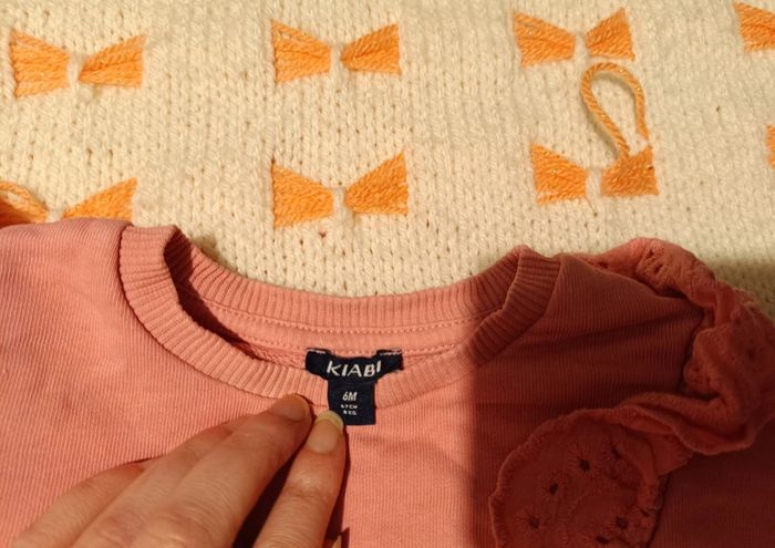joli pull rose pour bébé fille de la marque Kiabi, taille 6 mois (67 cm).