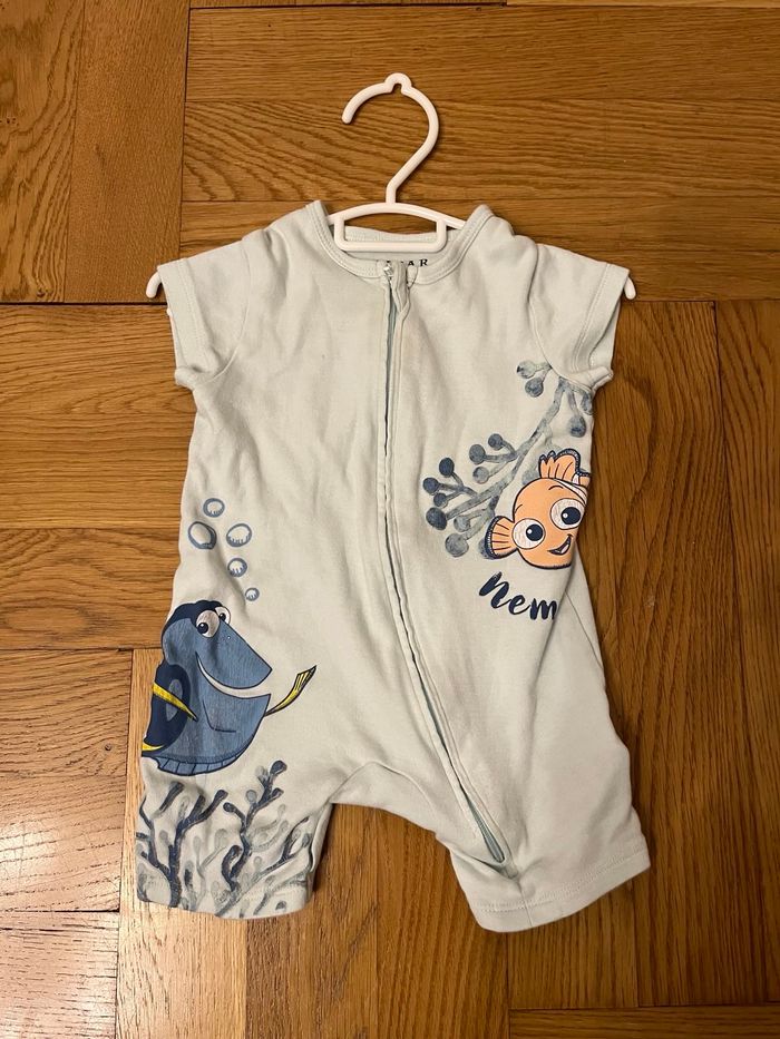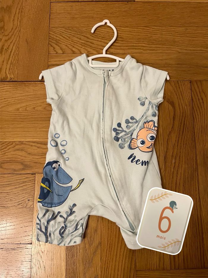 Pyjama léger court bleu. Motif Nemo et Dory, taille 6 mois.