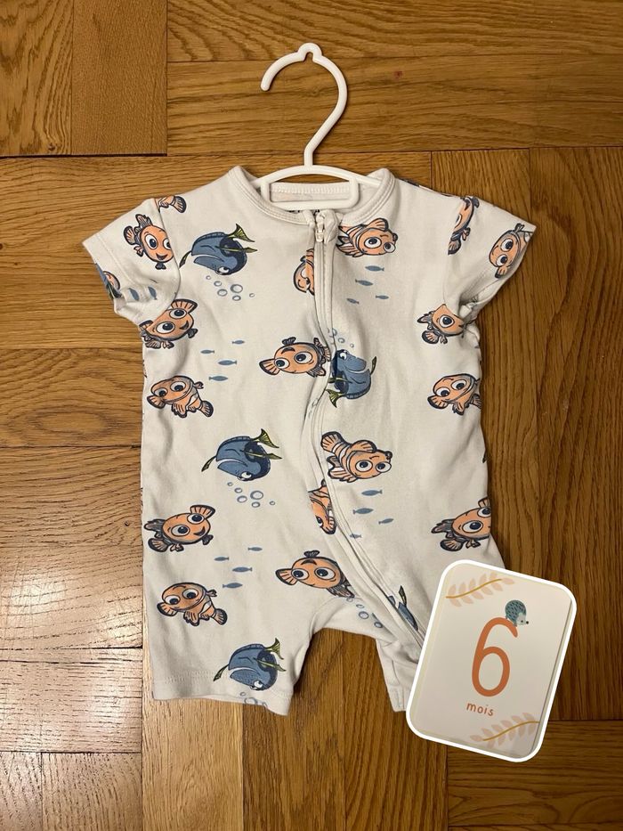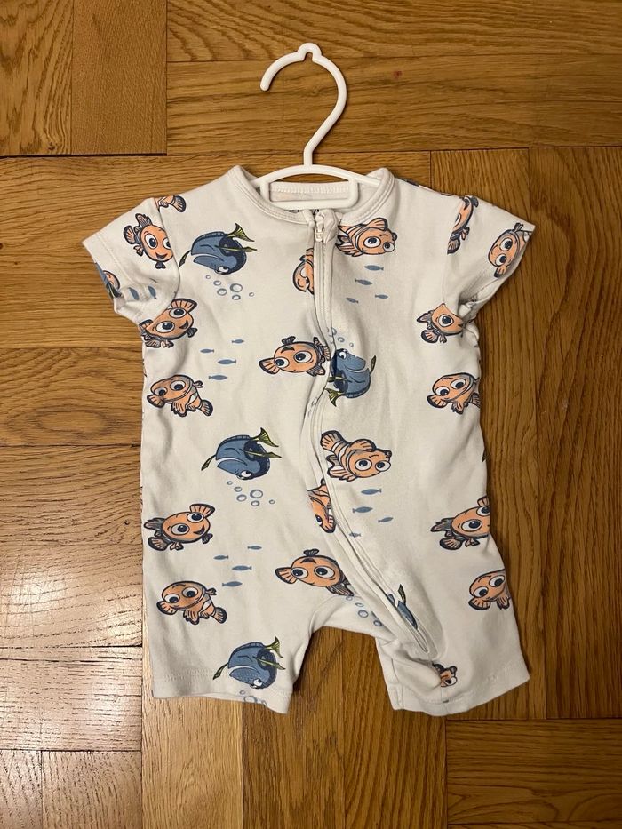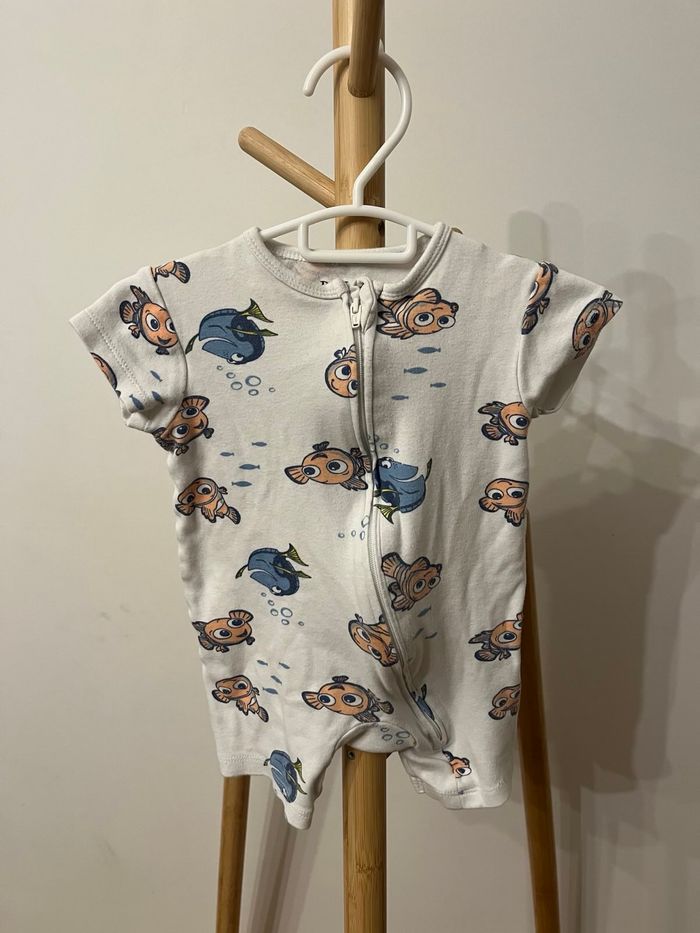 Pyjama léger court blanc crème. Motif Nemo et Dory, taille 6 mois.