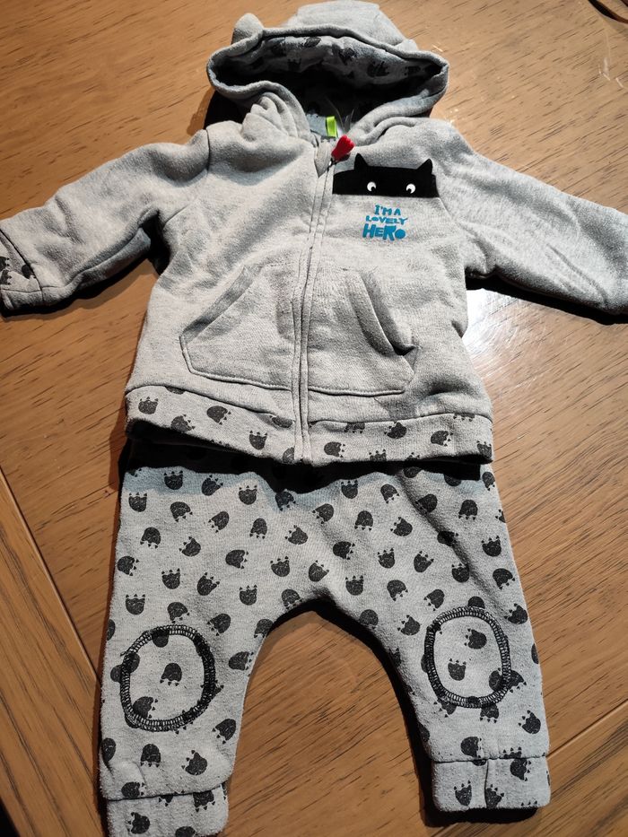 Tenue chaude Orchestra taille 9 mois composée d'un gilet et d'un pantalon.