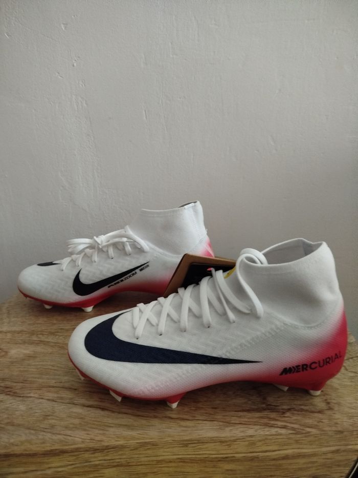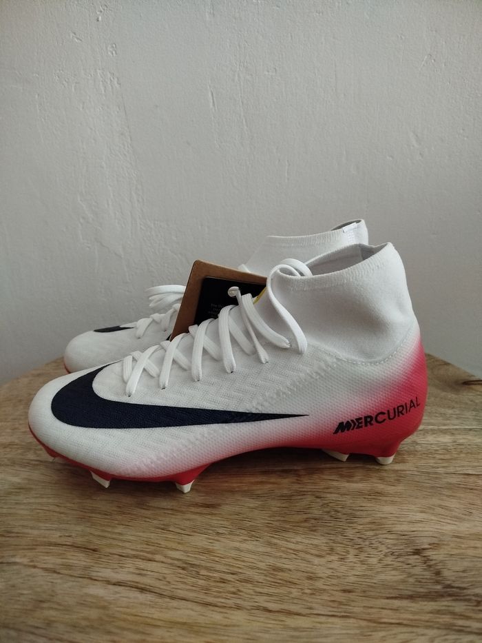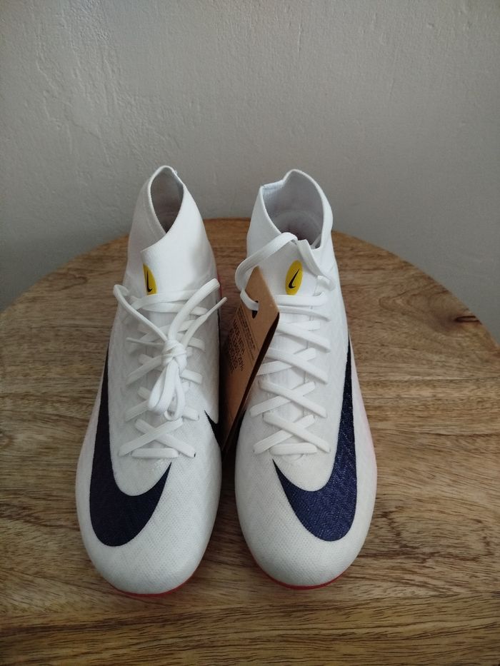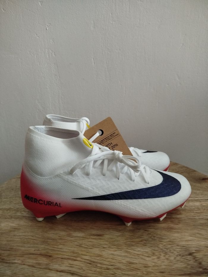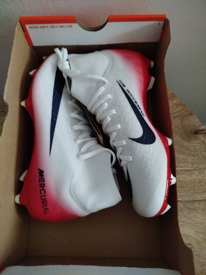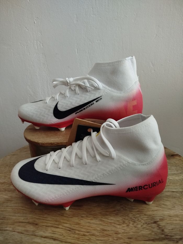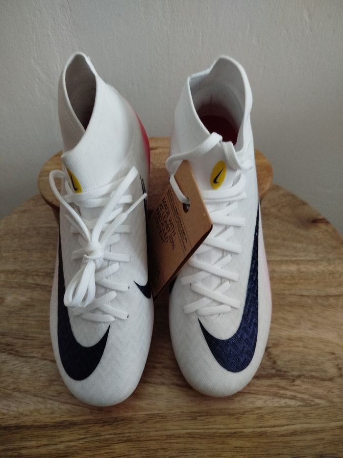 Je vends ces crampons de football - Marque : Nike - Modèle : ZM Superfly 10 acad FG/MG LV8 - Taille : 36 - Couleur : Blanc rouge - Activité/Sport : Football - État Neuf Boîte sans couvercle N'hésitez pas à me contacter pour plus d'informations.