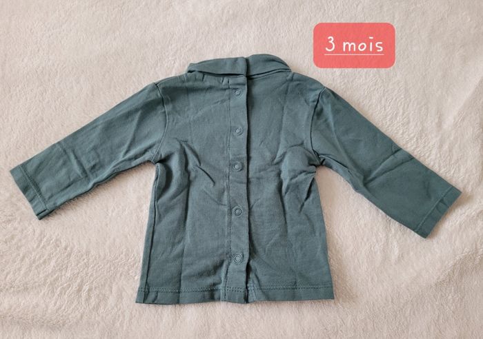 Vends ce joli sous-pull à col montant de la marque Kiabi, idéal pour garder bébé bien au chaud sous un pull ou une salopette cet hiver.