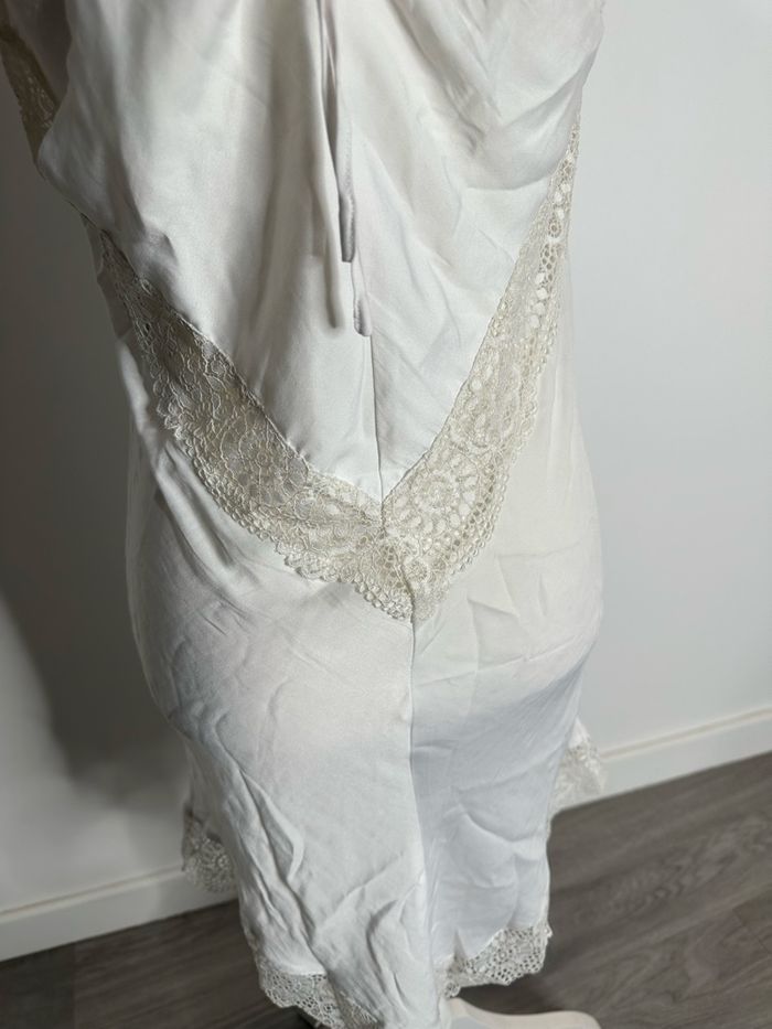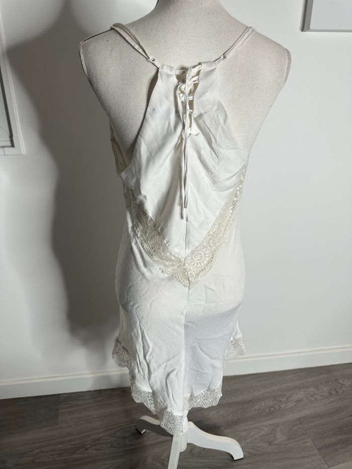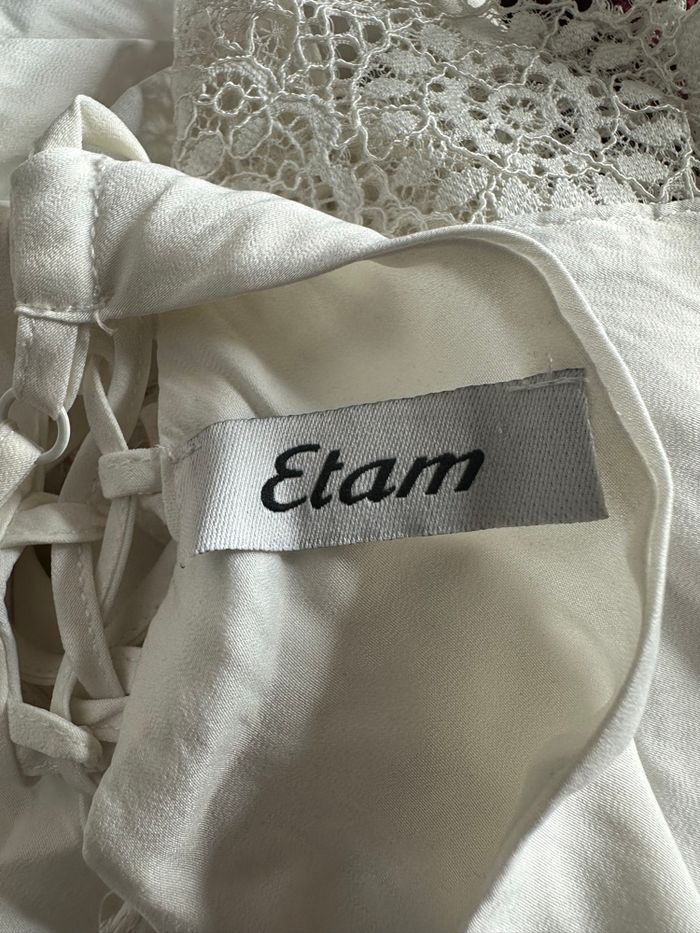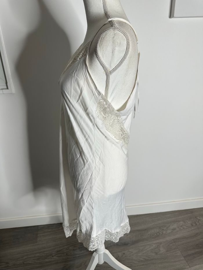 Nuisette - Excellent état - Taille 40 équivalent L Dimensions en bas de l’annonce - Blanc crème - Marque Etam - Liens dans le dos - Polyester et dentelle - Légèrement transparente - À porter en nuisette, en robe, par dessus un pull.. Dimensions: - 56cm niveau aisselles - 70cm de long à partir de l’aisselle