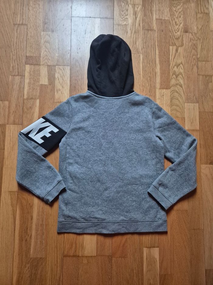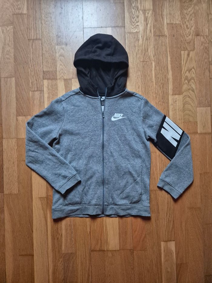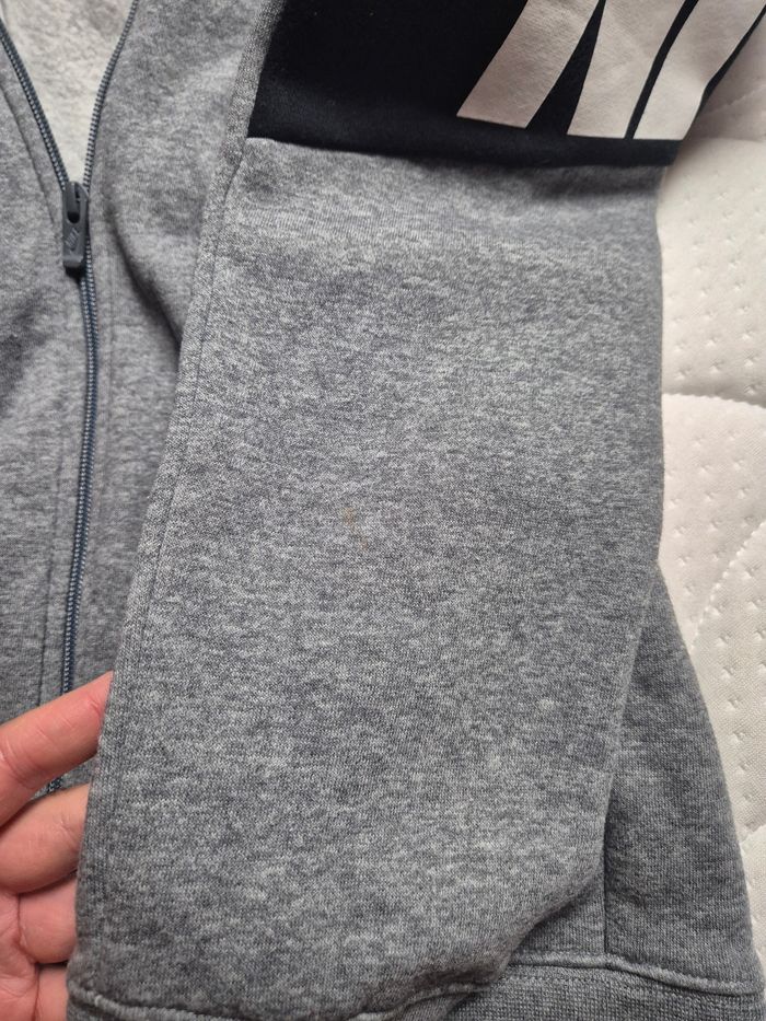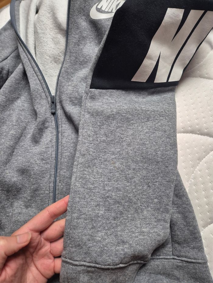 ✅️Veste enfant Nike avec grosse écriture Nike sur la manche ,en très bon état. Il y a une tâche quasi invisible sur la manche gauche voir photos, elle se fond dans le gris .