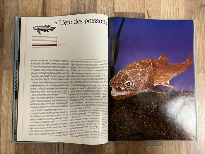 Ce livre relié est en état satisfaisant : pas d’écriture, pas de page manquante ⚠️ Mis en état satisfaisant car la couverture porte les traces du temps liées à la manipulation. (Voir photos) Du scotch est présent sur certaines pages car le papier a été déchiré mais c’est très peu visible (voir photos) Textes + très belles photos sur l’évolution des espèces 94 pages Imprimé en 1976