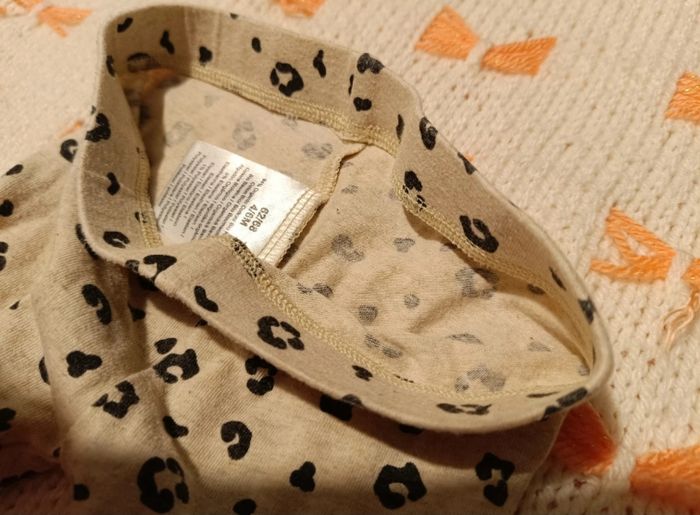 Couleur : Beige avec de jolis petits motifs noirs (petits cœurs/formes géométriques).