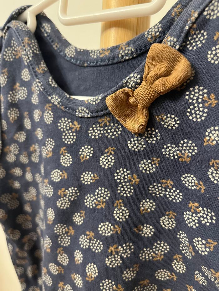 Couleurs : bleu marine/marron, motif fleurs pissenlit et petit noeud