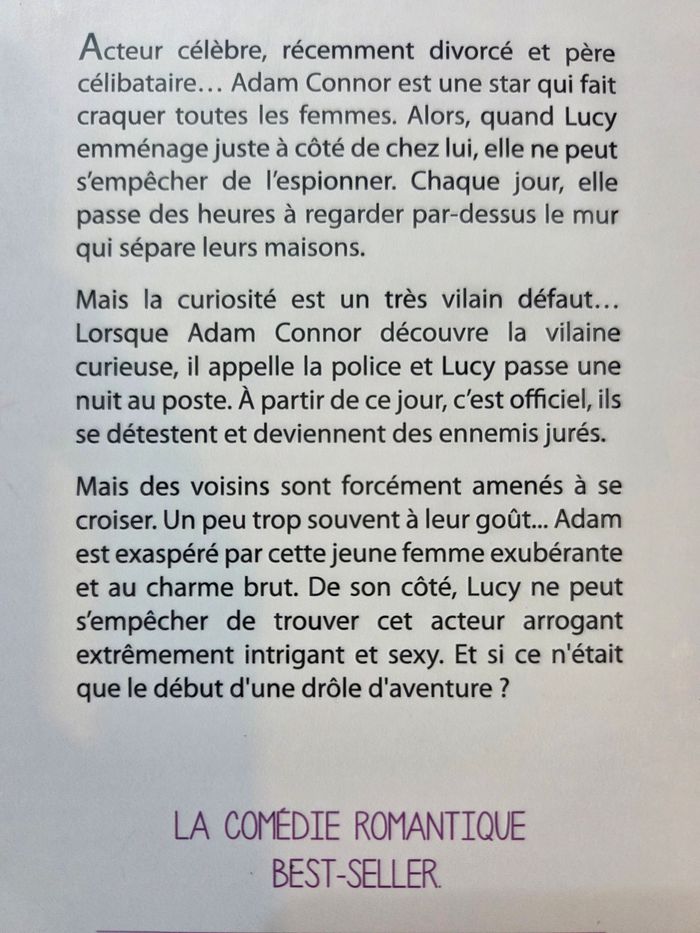 Acteur célèbre, récemment divorcé et père célibataire... Adam Connor est une star qui fait craquer toutes les femmes. Alors, quand Lucy emménage juste à côté de chez lui, elle ne peut s'empêcher de l'espionner. Chaque jour, elle passe des heures à regarder par-dessus le mur qui sépare leurs maisons. Mais la curiosité est un très vilain défaut... Neuf. Broché. Envoi sous 24h_48h 🐱 Rapide, soigné et 🎥
