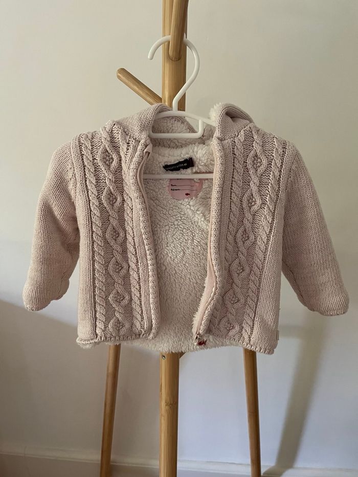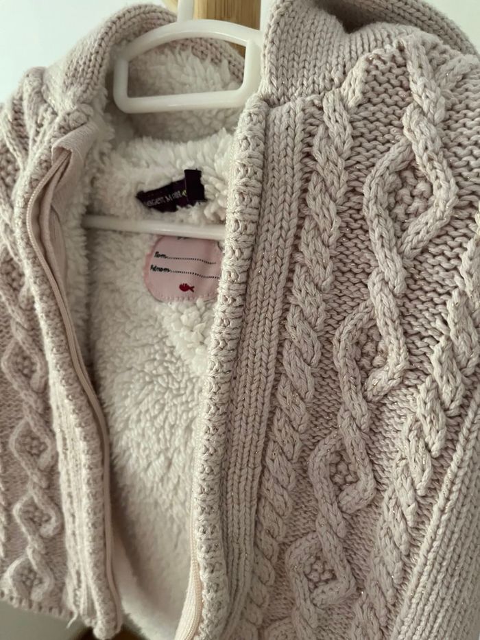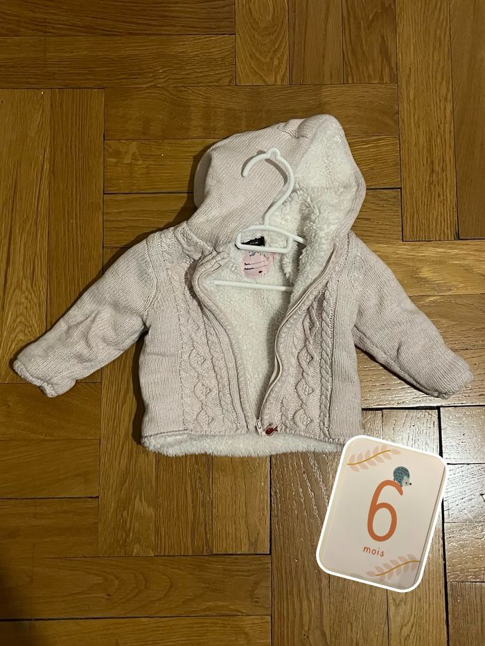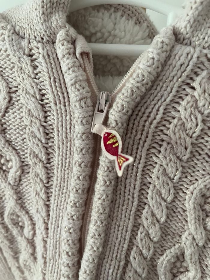 Gilet chaud pour l'hiver motif poissons sur le zip. Taille 6 mois.