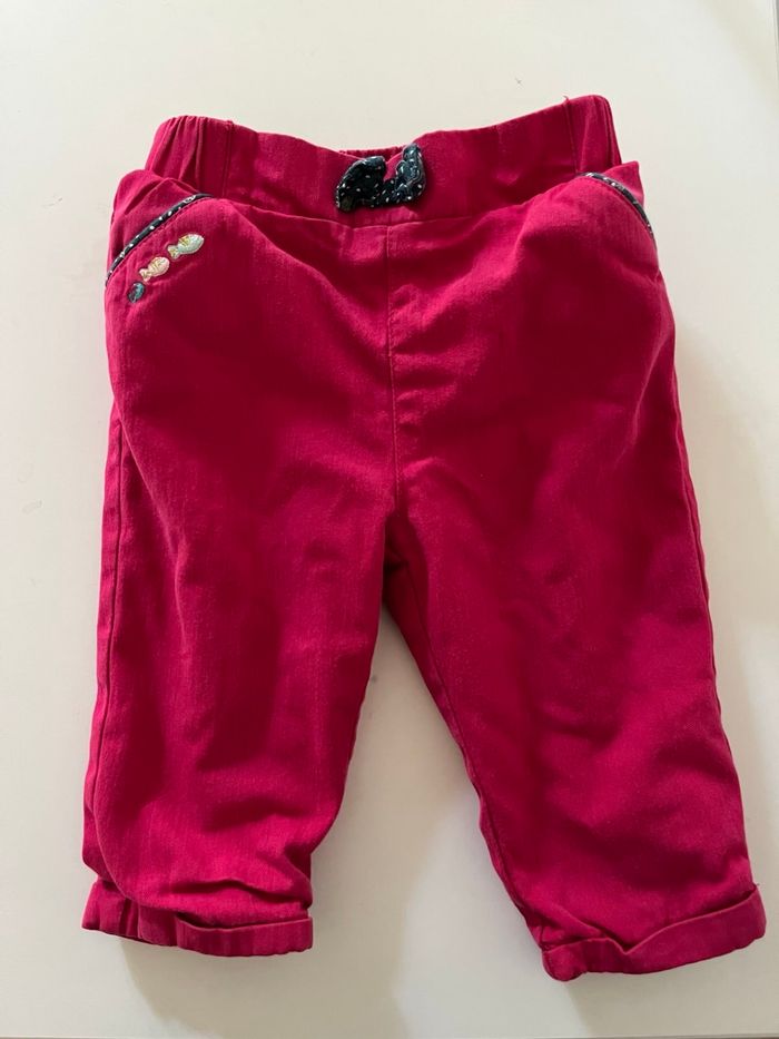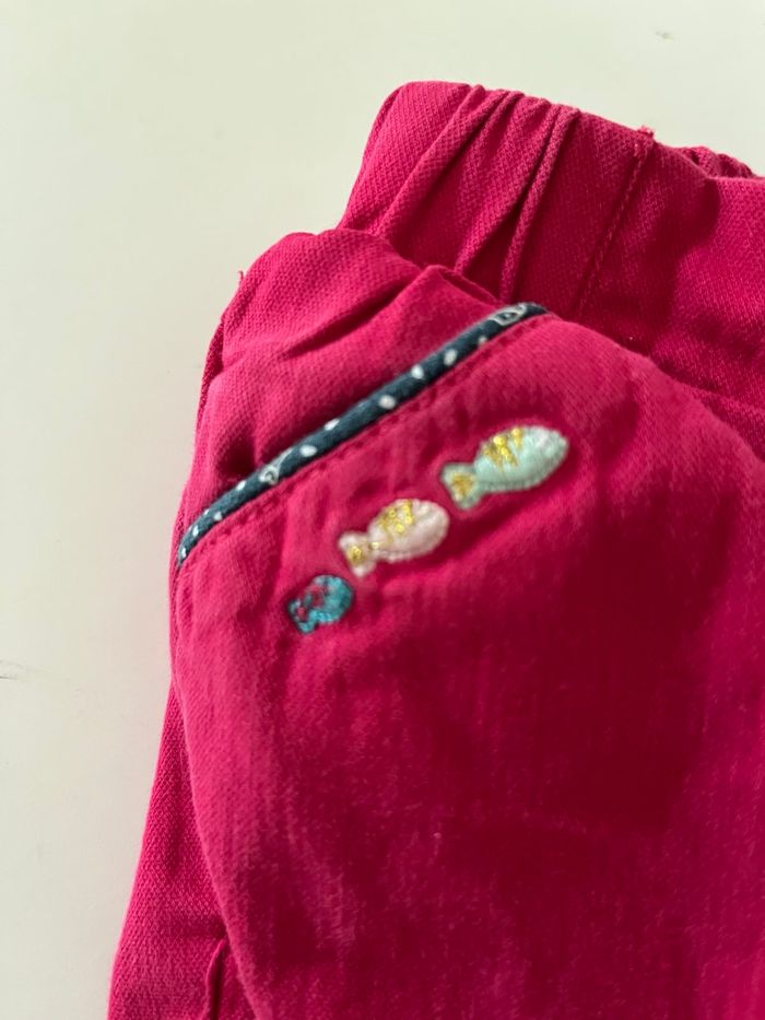 Pantalon fuschia et chaussettes, motif poissons. Taille 6 mois.