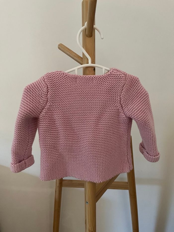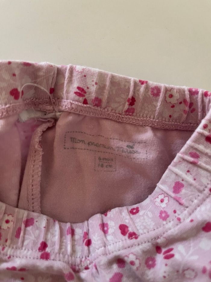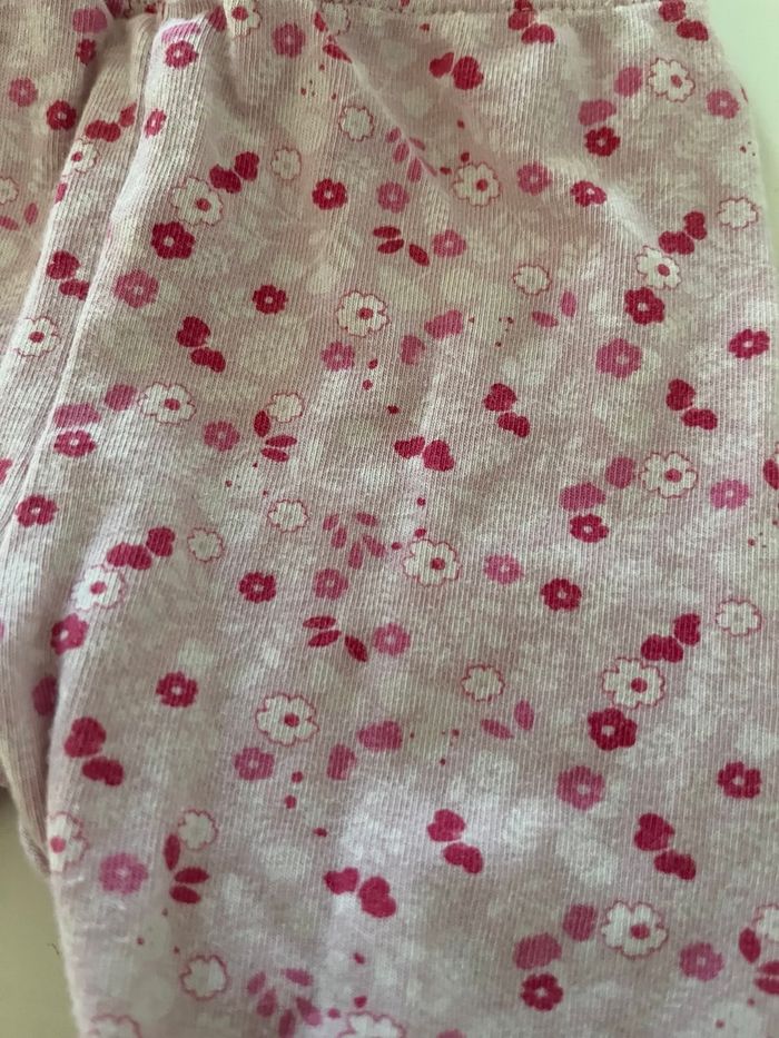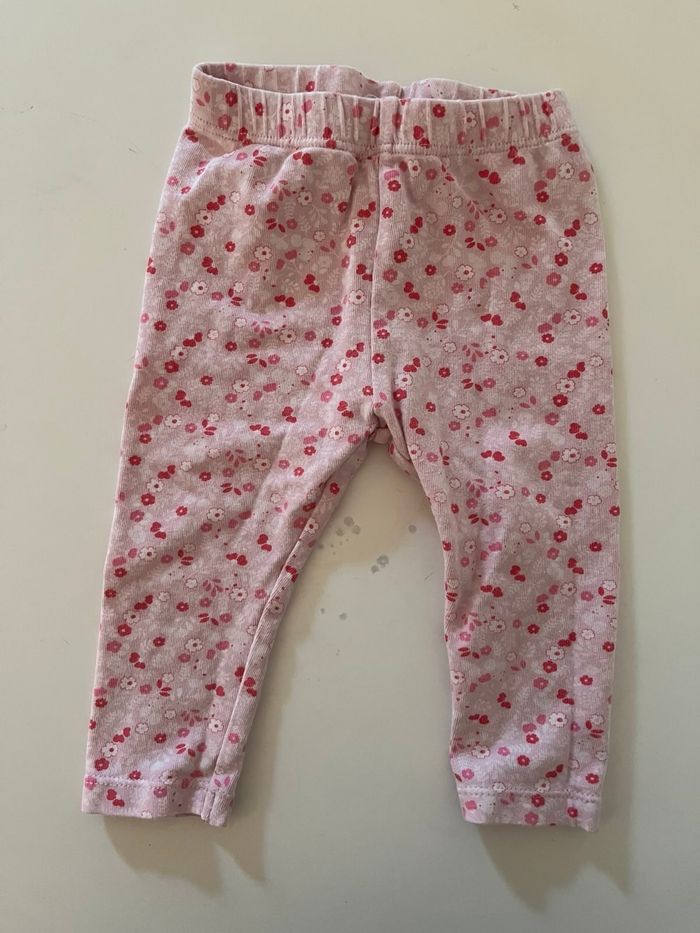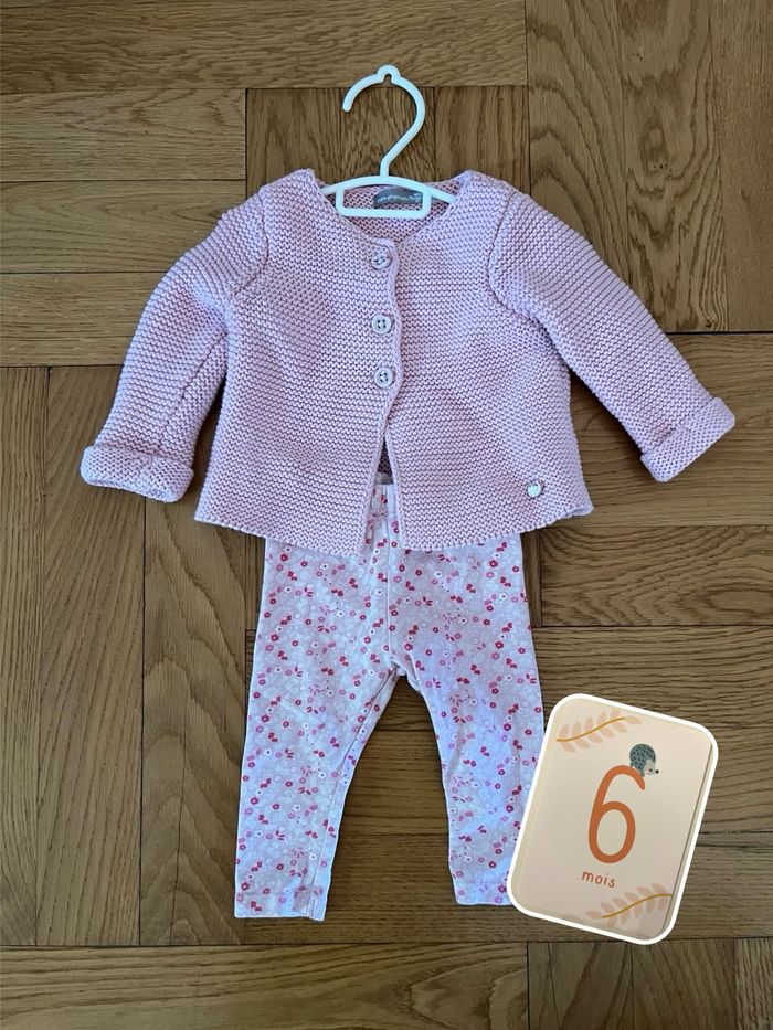 Ensemble gilet chaud et legging rose à motif fleurs. Taille 6 mois.