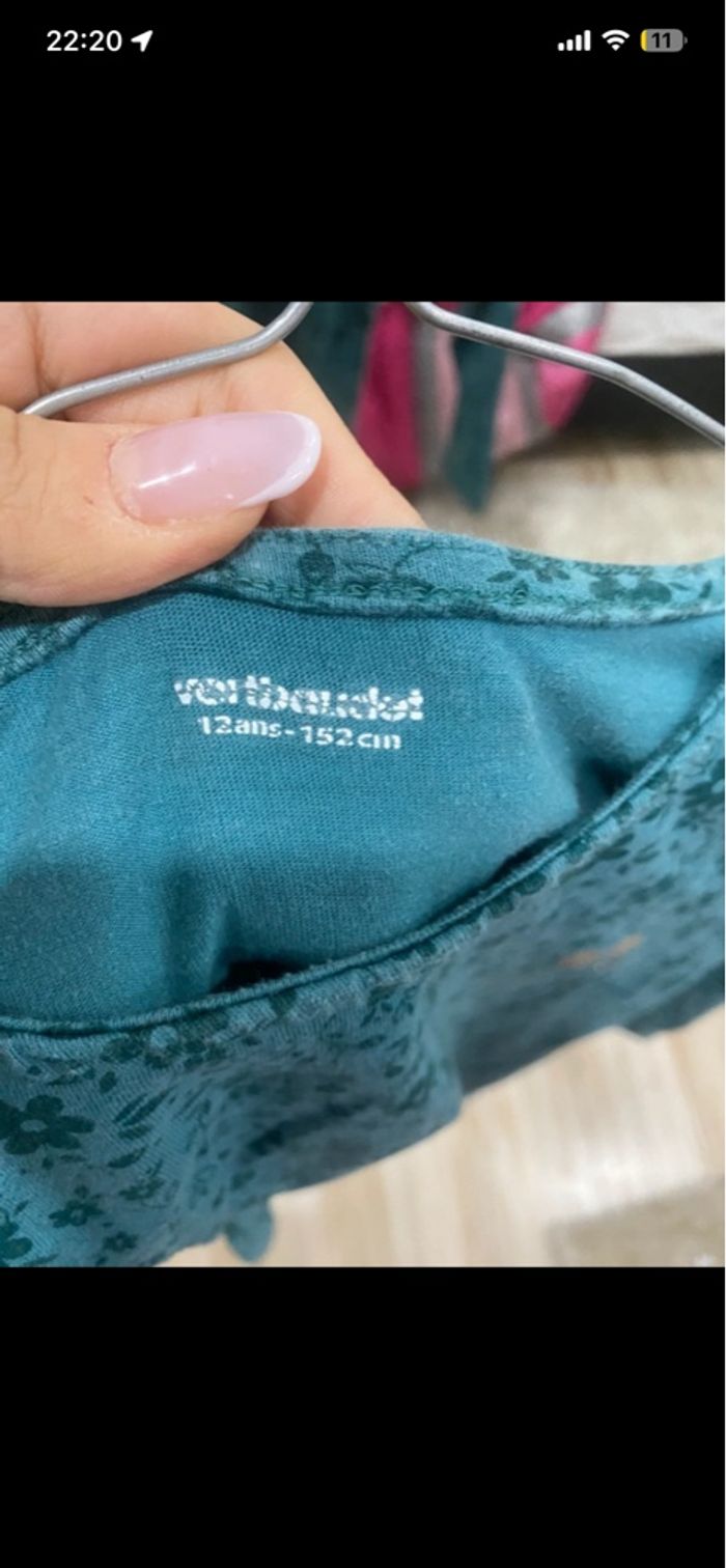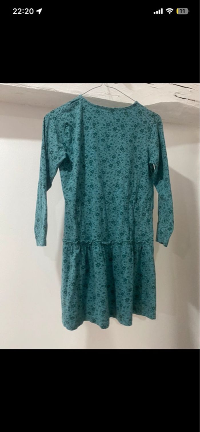 Jolie robe fille à manches longues, couleur vert d’eau avec imprimé fleurs.