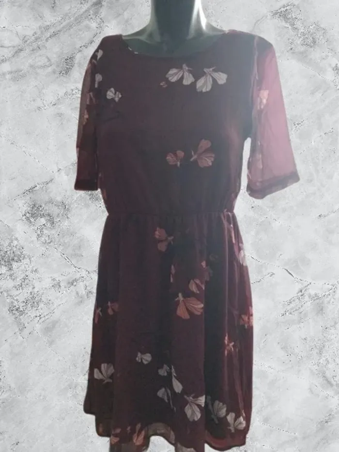 Sublime robe bordeaux à motifs floraux clairs, parfaite pour ajouter une touche de fraîcheur et de féminité à votre garde-robe !