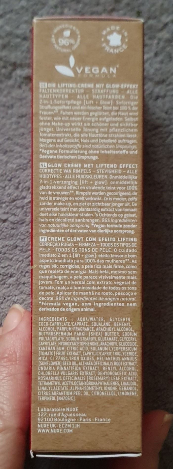 Composée à 96% d'ingrédients d'origine naturelle.
