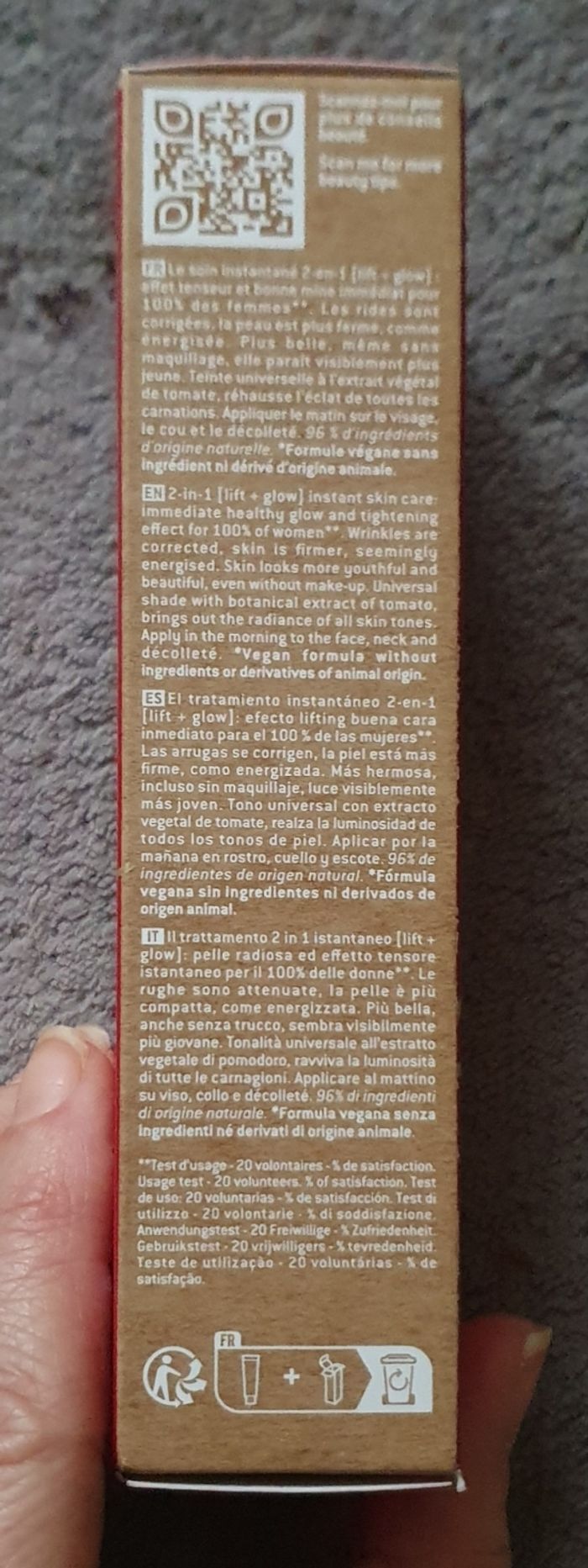 Dès l'application, la peau est lissée, lumineuse et comme défatiguée pour 100% des utilisatrices.