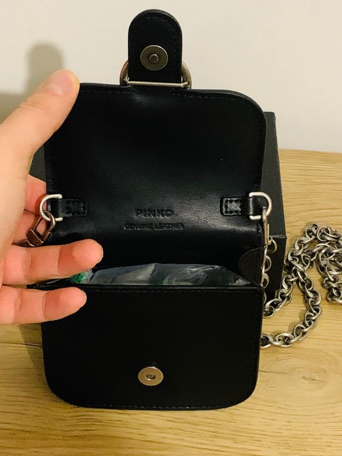 Mini sac pinko noir avec bandoulière Neuf avec étiquette et carton d’origine Dimension 13cm x 9cm x 6 cm Disponible en rose (voir la dernière photo)