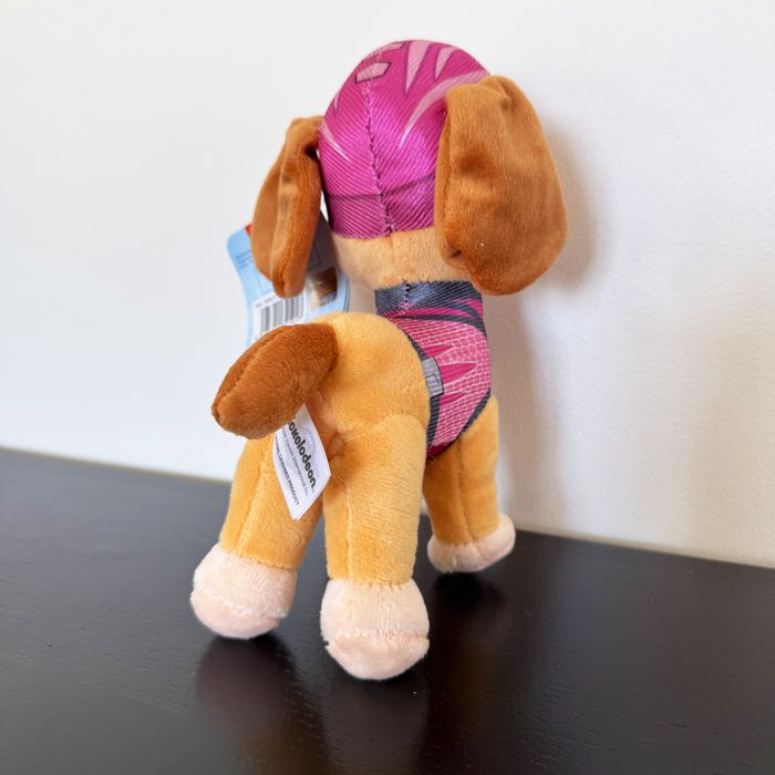 Peluche de Stella avec sa tenue de Mission Dino sous licence officielle, conçue par le fabricant Play by Play. Elle mesure environ 19cm de hauteur.
