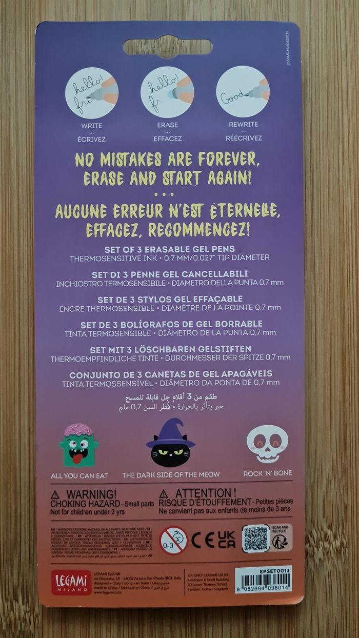 Legami Effaçables - NEUFS = 3 Stylos -> 1 Set HALLOWEEN 2025 : LIMITED EDITION 3 Stylos LEGAMI effaçables : Collection HALLOWEEN 2025 - Neufs édition LIMITED EDITION avec la Mention sur l'emballage en haut à gauche + la Mention au dos des 3 Stylos Edition Plus Commercialisée Définitivement - Introuvable Neufs - Authentiques LEGAMI Au besoin, nous avons toutes les éditions Legami effaçables et lovely friends qui existent depuis leurs débuts en 2020, toutes les éditions les plus recherchées, tout n'est pas encore en ligne, nous demander 🥰